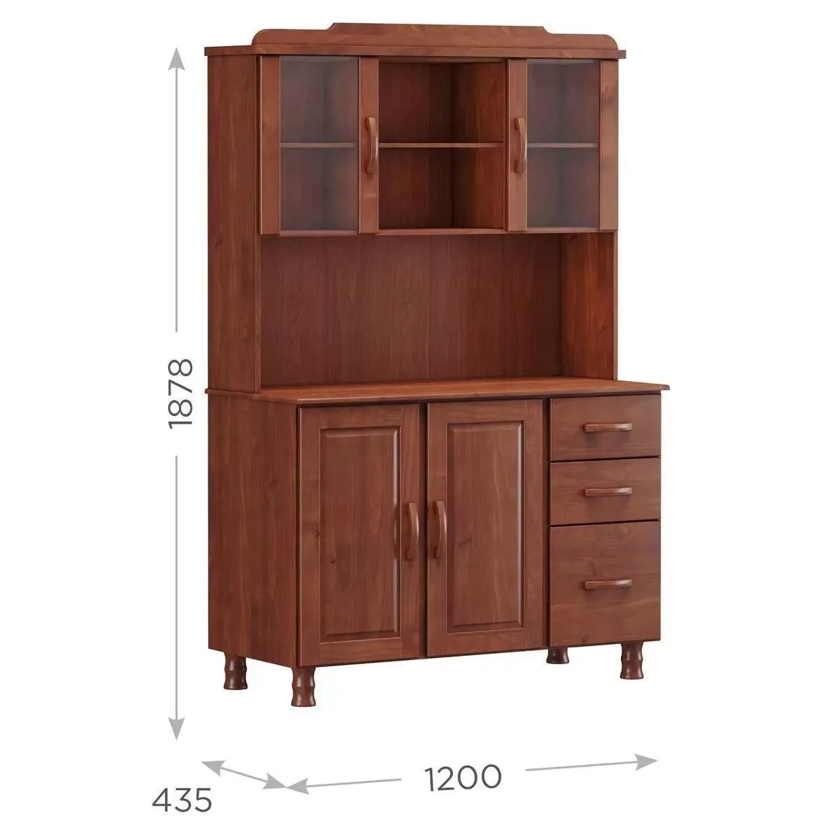 ARMÁRIO CRISTALEIRA 4 PORTAS 3 GAVETAS COBRE COR IMBUIA MADEIRA