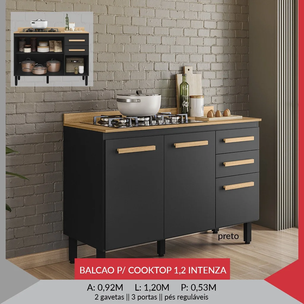 BALCÃO 1200 X 925 X 530 COOKTOP INTENZA - BCO/BCO UV C/ TPO - PRETO / BRANCO / FREIJO OFF WHITE