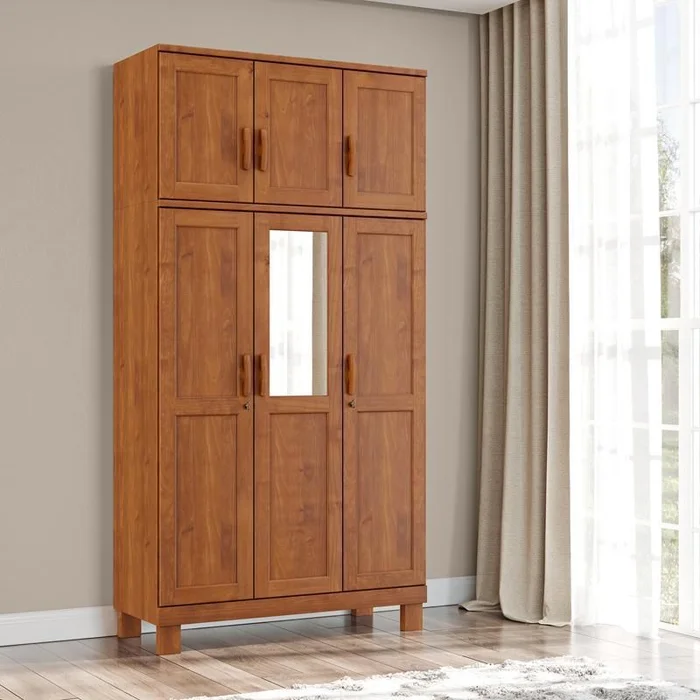 GUARDA ROUPA 6 PORTAS COM ESPELHO S/APLIQUE COBRE COR CASTANHO