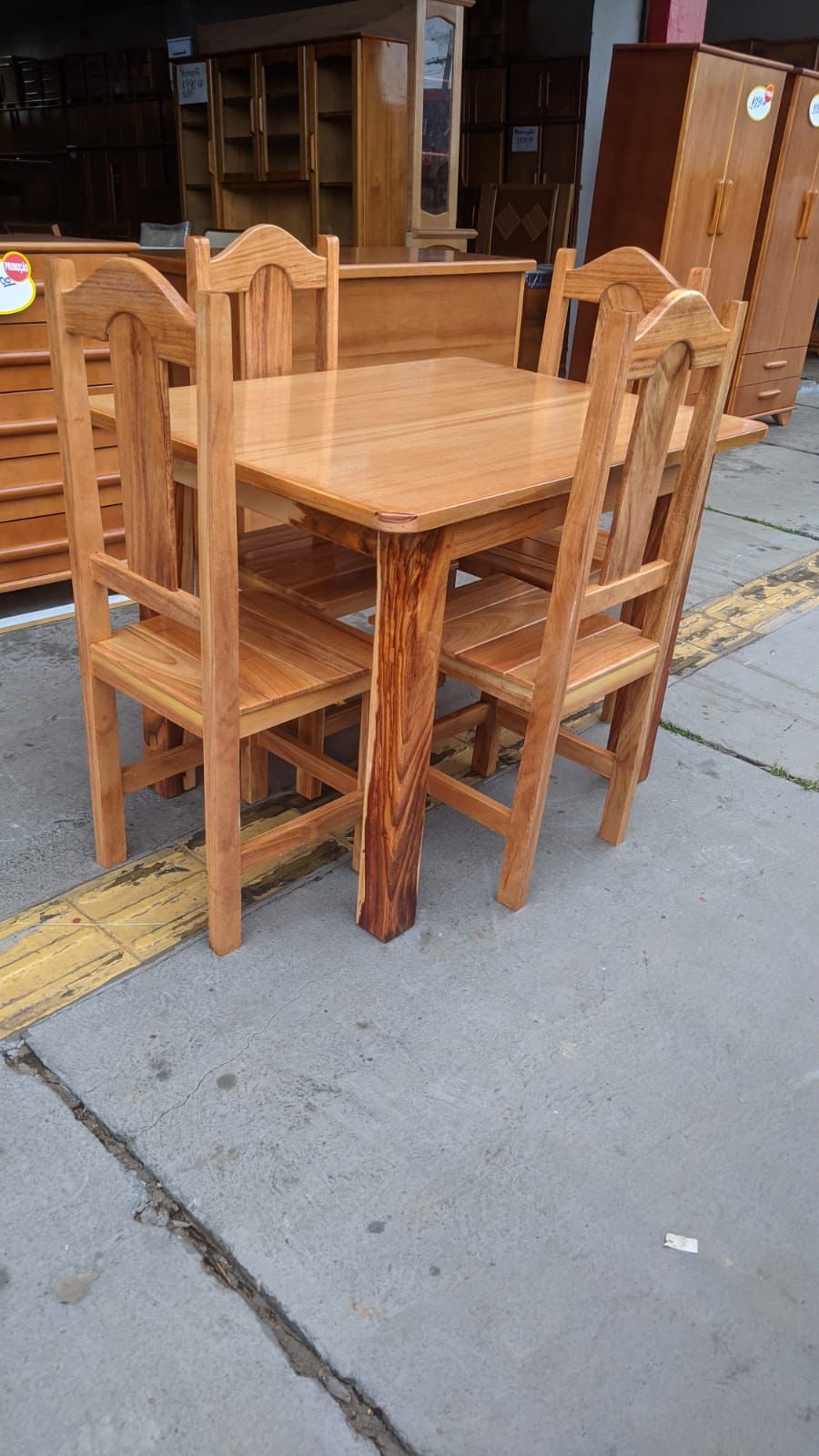 MESA DE MADEIRA RÚSTICA TAMPO EM SARRAFIADO 4 CADEIRAS 1,10 X 0,80