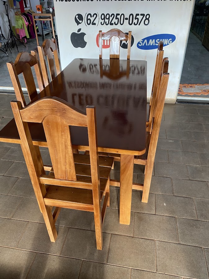 MESA DE MADEIRA RÚSTICA TAMPO EM SARRAFIADO 6 CADEIRAS 1,60 X 0,80