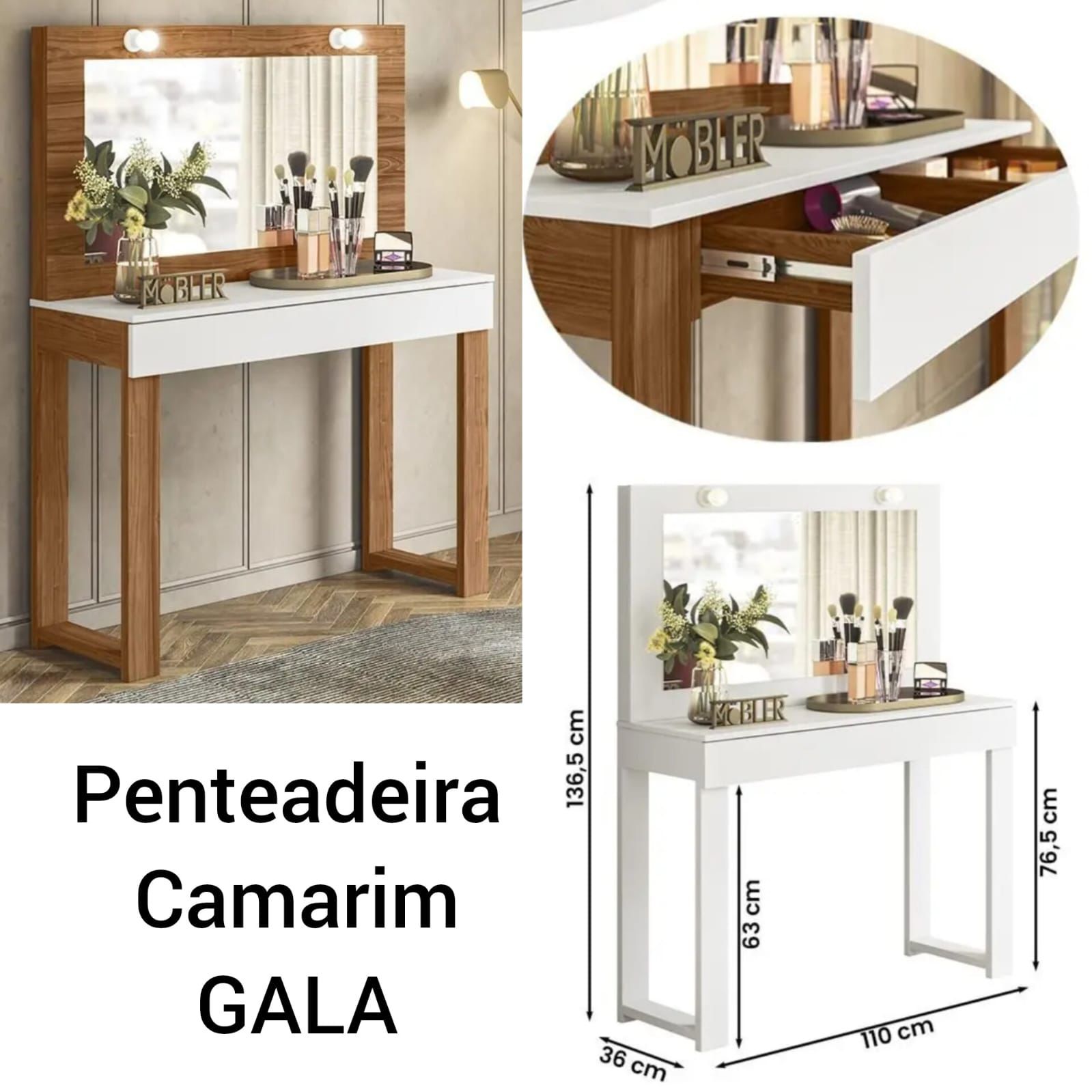 PENTEADEIRA CAMARIM GALA 1.35 X 1.10 X 0.36 - CINAMONO MEL / BRANCO FOSCO