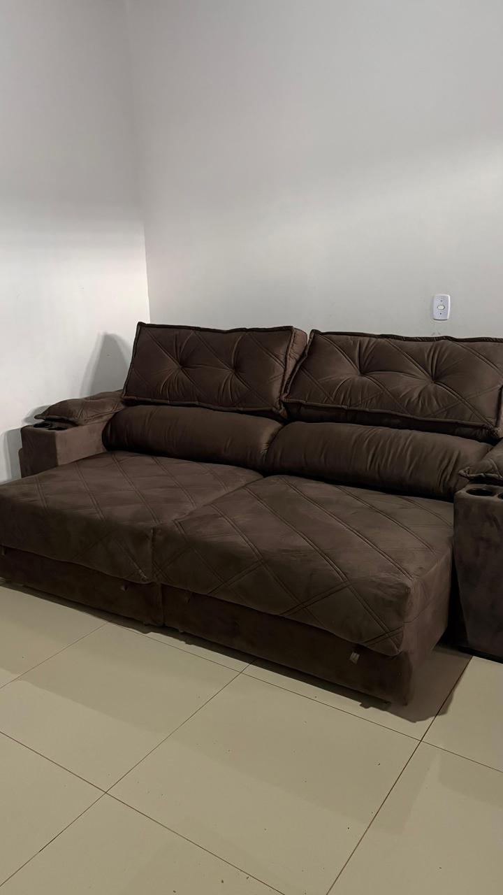 SOFÁ ITÁLIA 2 ASSENTOS C/ 4 PORTA COPOS 2.60 M - TECIDO VELUDO / MARROM